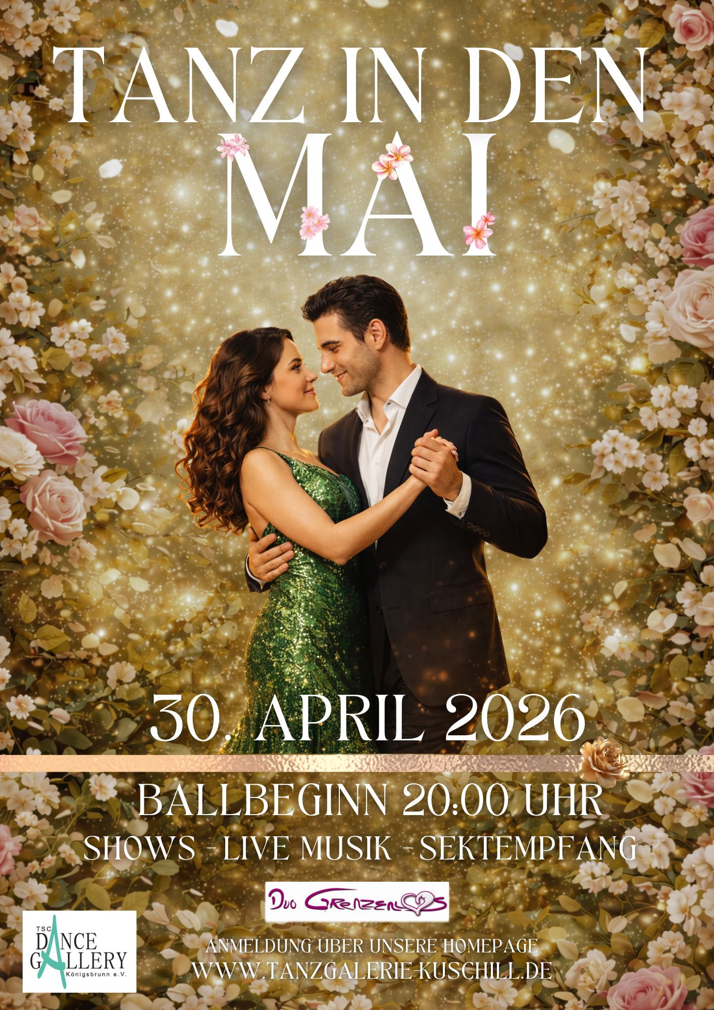 Starten wir den Mai mit einem Sektempfang, Livemusik mit Duo Grenzenlos und leckeren Häppchen und einer großartigen Tanzparty!